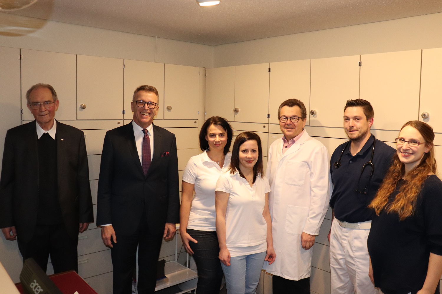 Deshalb sei es umso erfreulicher und ein herausragender Standortfaktor, wenn sich in zentraler Lage am Marktplatz eine Praxis für Allgemeinmedizin weiterhin um die Belange ihrer Patienten kümmere. Er dankte Schön und dessen Ehefrau Doris für das Geleistete. Anschließend gab Pater Helmut Stadermann von den Steyler Missionaren St. Peter den kirchlichen Segen….