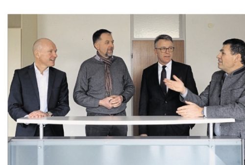 Wollte oder musste die Tuchfabrik Mehler ihre Firma gebäudlich erweitern, ging das eigentlich nur in die Vertikale. Das belegen die zwei Hochregallager, die in den vergangenen Jahren entstanden sind. Jetzt ist das anders. Genaugenommen haben Kewog-Chef Bernd Büsching und Bürgermeister Franz Stahl die beiden Geschäftsführer der Tuchfabrik, Paulus und Ludwig Mehler, darauf gebracht. Büsching war der Erste, der den Mehlers den Gebäudekomplex, in dem viele Jahre das Arbeitsamt und die Kewog untergebracht waren, zum Kauf anbot.