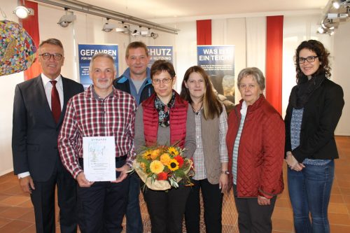 Bereits zum zehnten Mal verbrachte das Ehepaar Rolf und Petra Rohrbach aus Gießen seinen Urlaub auf dem Gründlbacher Franzenhof von Familie Härtl. Im Museumsquartier gratulierten Bürgermeister Franz Stahl und die Leiterin der Tourist-Information, Katrin Demleitner, den Urlaubern zum Jubiläum. Sie überraschten die treuen Gäste mit einem Blumenstrauß, einer Flasche Sekt und einem Buch über die Gastgeberstadt. "Wir kommen nach Hause! Dieses Gefühl stellt sich jedes Mal ein, wenn wir hier zu Besuch sind. Besonders schätzen wir die tollen Möglichkeiten zum Angeln, Joggen, Spazierengehen und Fotografieren sowie den wunderbaren Fischhofpark", so Rolf und Petra Rohrbach, die auch 2018 ihren Urlaub in Gründlbach verbringen.